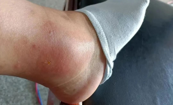 馮云在支援隴川時被毒蟲咬到腳,腳腫得像個饅頭