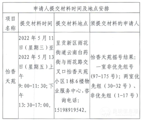 公告明確,參與補(bǔ)選的申請人須在5月11日-5月13日,到昆明市呈貢新區(qū)雨花街道云南白藥街與雨花路交叉口怡香天苑小區(qū)1棟6樓物業(yè)服務(wù)中心提交材料。相關(guān)材料按照昆明安居網(wǎng)首頁“在線幫助”公布的《申請公共租賃住房提交材料清單》準(zhǔn)備。
