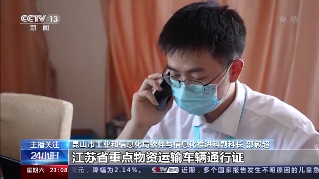 昆山市工業(yè)和信息化局軟件與信息化推進(jìn)科副科長 邵毅超:你們需要開具的十張江蘇省重點(diǎn)物資運(yùn)輸車輛通行證已經(jīng)開好了,有效期是十天。