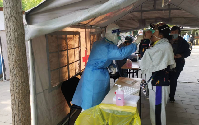 跟其他社區(qū)不同,勁松北社區(qū)被分割成10個小院,各自封閉。核酸檢測人員就分成11個組,去到各個樓院做核酸,基本到下午6點左右才能完工。
