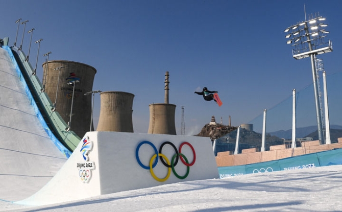 2月15日,中國選手蘇翊鳴在比賽中。當日,北京2022年冬奧會單板滑雪男子大跳臺決賽在北京首鋼滑雪大跳臺舉行。蘇翊鳴奪得金牌。新華社記者 黃宗治 攝