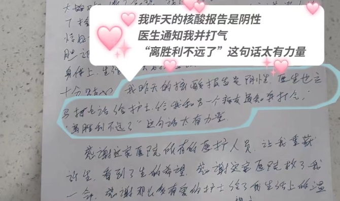 患者給醫(yī)護人員的感謝信。受訪者供圖