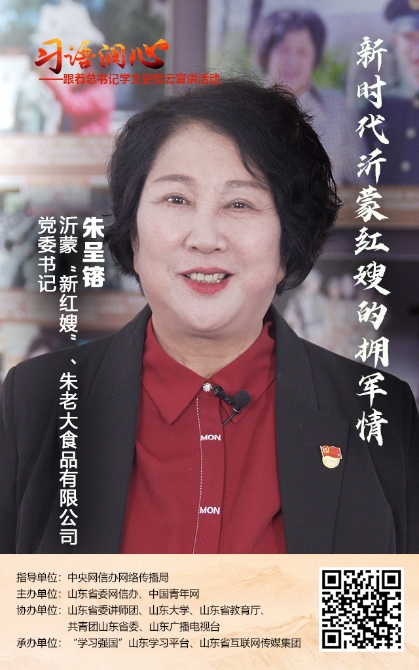 為喜迎黨的二十大勝利召開(kāi),推動(dòng)黨史學(xué)習(xí)教育常態(tài)化長(zhǎng)效化,激發(fā)廣大網(wǎng)民特別是青年群體深刻理解“兩個(gè)確立”的決定性意義,增強(qiáng)“兩個(gè)維護(hù)”的自覺(jué)性、堅(jiān)定性,5月9日,在習(xí)近平總書(shū)記給《文史哲》編輯部全體編輯人員回信一周年之際,“習(xí)語(yǔ)潤(rùn)心——跟著總書(shū)記學(xué)文史哲”云宣講活動(dòng)正式啟動(dòng)?;顒?dòng)由中央網(wǎng)信辦網(wǎng)絡(luò)傳播局指導(dǎo),山東省委網(wǎng)信辦、中國(guó)青年網(wǎng)主辦,山東省委講師團(tuán)、山東大學(xué)、山東省教育廳、共青團(tuán)山東省委、山東廣播電視臺(tái)協(xié)辦,“學(xué)習(xí)強(qiáng)國(guó)”山東學(xué)習(xí)平臺(tái)、山東省互聯(lián)網(wǎng)傳媒集團(tuán)承辦。今天,讓我們將目光聚焦到沂蒙大地,聽(tīng)沂蒙“新紅嫂”、朱老大食品有限公司黨委書(shū)記朱呈镕講述沂蒙精神在新時(shí)代的傳承故事。