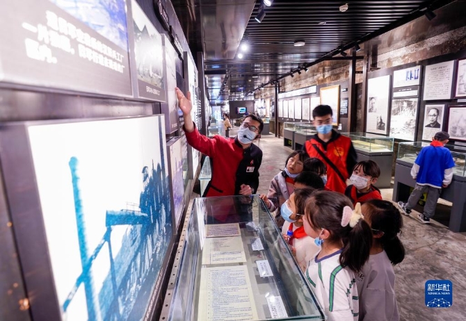在重慶九龍坡區(qū)重慶建川博物館,30名來自城口縣的留守兒童、困難家庭青少年在共青團青年志愿者的陪伴下參觀游覽(2021年2月24日攝)。新華社記者 劉潺 攝