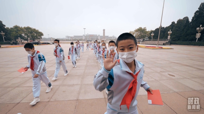 北京市中小學(xué)生代表走入會(huì)場(chǎng)。(總臺(tái)央視記者 彭漢明拍攝)