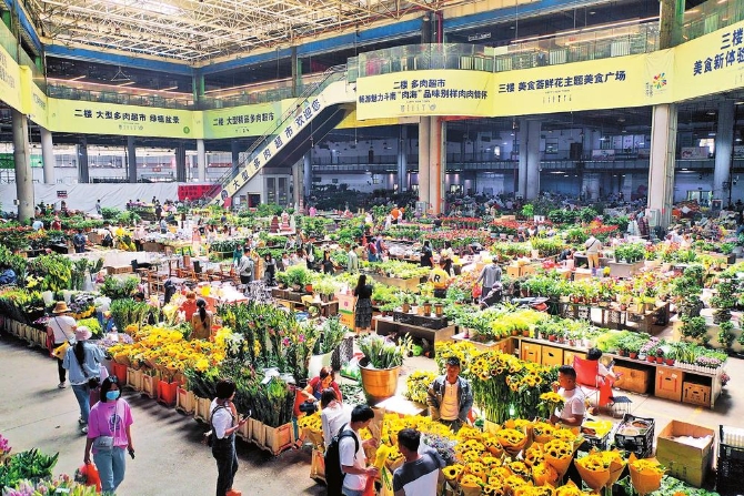 圖為斗南花卉市場(chǎng)一角。(云南日?qǐng)?bào) 記者張雁群 通訊員 馬玲麗)