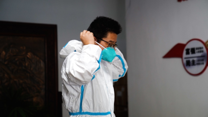 孫廉正在穿防護(hù)服(央廣網(wǎng)發(fā) 受訪者供圖)