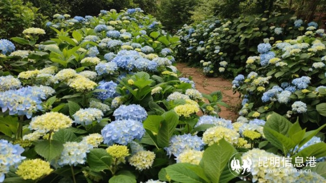 到5月下旬至6月間,花團(tuán)錦簇、唯美浪漫、色彩各異的繡球花將全面綻放,呈現(xiàn)出五彩繽紛,絢麗奪目的景觀,讓昆明市郊野公園的綠野成為今夏昆明夢(mèng)幻花海的打卡網(wǎng)紅地。