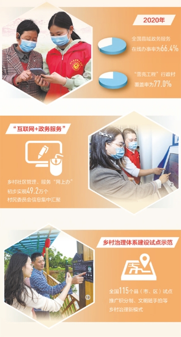 在全國(guó),數(shù)字技術(shù)對(duì)于構(gòu)建完善現(xiàn)代鄉(xiāng)村治理體系,發(fā)揮著越來(lái)越重要的作用。目前,“互聯(lián)網(wǎng)+政務(wù)服務(wù)”助力群眾便捷辦事,初步實(shí)現(xiàn)了全國(guó)49.2萬(wàn)個(gè)村民委員會(huì)信息集中匯聚,鄉(xiāng)村社區(qū)管理、服務(wù)“網(wǎng)上辦”“掌上辦”“快捷辦”,有效提升了鄉(xiāng)村治理效率。