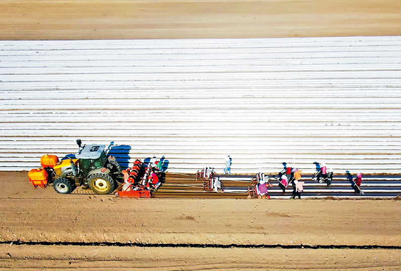 耕地是糧食生產(chǎn)的命根子。近年來,各地持續(xù)推進農(nóng)田水利設(shè)施和高標(biāo)準(zhǔn)農(nóng)田建設(shè),加快良種、先進農(nóng)機裝備攻關(guān)和推廣應(yīng)用,不斷提高農(nóng)業(yè)綜合生產(chǎn)能力,促進農(nóng)民致富增收。圖為2022年4月29日,工作人員在國家現(xiàn)代農(nóng)業(yè)示范區(qū)——河北省張家口市塞北管理區(qū)農(nóng)業(yè)基地播種胡蘿卜。 新華社發(fā) 武殿森/攝
