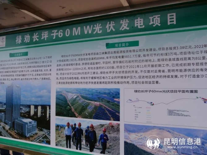 祿勸長(zhǎng)坪子60MW光伏發(fā)電項(xiàng)目,由三峽集團(tuán)云南能源投資有限公司開(kāi)發(fā)建設(shè),項(xiàng)目總投資3.08億元,規(guī)劃總裝機(jī)60MW,年平均發(fā)電量9851.7萬(wàn)度。項(xiàng)目場(chǎng)址位于屏山街道綠槐村委會(huì)、崇德街道鹽塘村、平田村、翠華鎮(zhèn)紅石巖村附近的坡地上,用地總面積約1300畝。長(zhǎng)坪子光伏項(xiàng)目的開(kāi)發(fā),每年可節(jié)約標(biāo)煤3萬(wàn)噸,對(duì)于打造金沙江沿江清潔能源走廊和帶動(dòng)地方經(jīng)濟(jì)快速發(fā)展將起到積極推動(dòng)作用。