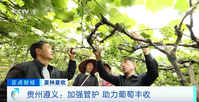立夏以來,貴州遵義三都縣13.6萬畝水晶葡萄掛果累累,豐收在望。眼下正處于管護(hù)關(guān)鍵期,當(dāng)?shù)剞r(nóng)技人員正忙著指導(dǎo)農(nóng)戶們?yōu)槠咸炎稣摹⑷ジ鄙?、去卷須、去副穗等管護(hù)作業(yè),助力穩(wěn)產(chǎn)增收。此外,為減少冰雹等自然災(zāi)害對葡萄帶來的損害,當(dāng)?shù)貧庀蟛块T也積極部署開展防雹作業(yè)。