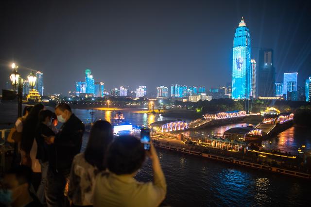 5月18日是國(guó)際博物館日。當(dāng)晚,湖北武漢上演“博物館之夜”主題長(zhǎng)江燈光展示活動(dòng)?;顒?dòng)融合現(xiàn)代光影、AR等技術(shù),動(dòng)態(tài)展示各地精美館藏文物及主題標(biāo)語(yǔ),點(diǎn)亮兩江四岸標(biāo)志性建筑,讓文物“活”起來(lái)。