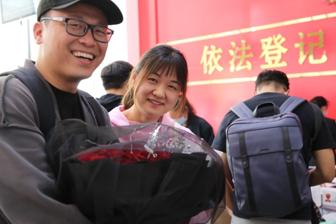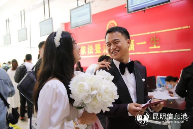昆明信息港訊 記者楊雁 每年的5月20日都是結(jié)婚登記高峰日,為確保5月20日婚姻登記規(guī)范有序,西山區(qū)政務(wù)服務(wù)中心通過五項(xiàng)舉措,有效防范和處置婚姻登記現(xiàn)場扎堆、聚集、擁擠現(xiàn)象,當(dāng)天共為219對新人辦理了婚姻登記。