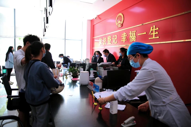 今年,西山區(qū)政務(wù)服務(wù)中心最大一個(gè)特色是實(shí)施預(yù)審登記,減少排隊(duì)等候時(shí)間。通過“一部手機(jī)辦事通”、“微信公眾號”、婚姻登記窗口咨詢電話等多種方式提供咨詢和預(yù)約,引導(dǎo)群眾進(jìn)行提前預(yù)審登記,錯峰辦理前置手續(xù),有效減少群眾排隊(duì)等候時(shí)間,避免出現(xiàn)聚集、擁擠現(xiàn)象。因此,從5月初,就有準(zhǔn)備結(jié)婚的新人們提前到西山區(qū)政務(wù)服務(wù)中心來填表、體檢,并告知工作人員希望5月20日當(dāng)天領(lǐng)取結(jié)婚證。提前辦完前置手續(xù)的新人們,今天不到10分鐘就開心地拿到了結(jié)婚證。據(jù)統(tǒng)計(jì),今年520錯峰辦理前置手續(xù)的新人達(dá)106對。