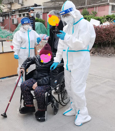 位于哈密路2004弄的錦程小區(qū)建成于20世紀(jì)80年代,僅有232戶、430多名居民,其中多為老年人,獨(dú)居或高齡的老人有30多戶。封控期間,留守錦程小區(qū)的居委會(huì)干部只有負(fù)責(zé)該小區(qū)的塊長(zhǎng)丁曉斌一人;十幾名社區(qū)志愿者,僅有5人在40歲以下,而其中“80后”馬一嵩、王吟夫婦幾乎放棄了自己的小家,把社區(qū)志愿者當(dāng)成了自己的“本職工作”。