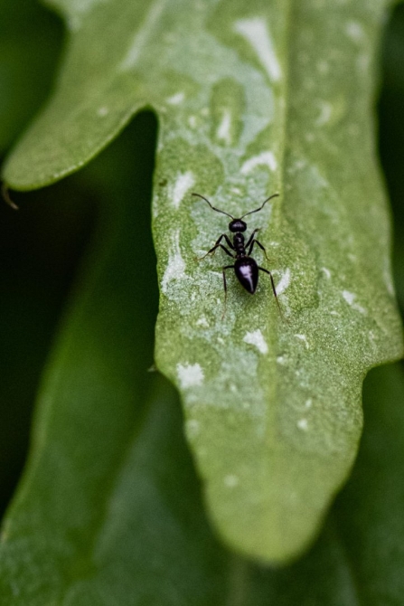 一只螞蟻在芝麻菜上。新華社記者 胡超 攝
