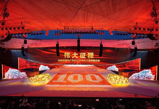 2021年6月28日晚,慶祝中國共產(chǎn)黨成立100周年文藝演出《偉大征程》在北京國家體育場盛大舉行。這是盛典儀式。