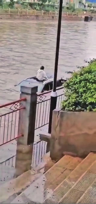 “我看到的時(shí)候,漂流的車輛已經(jīng)在(河流)下段了,后備箱和天窗是開著的,但是車頂上已經(jīng)沒有人了。聽說有人跳下去企圖救那名女子,但水流太急了,根本游不過去,沒法靠近她。救護(hù)車是在悅景酒店附近將女子拉走的?!爆F(xiàn)場目擊市民告訴記者。