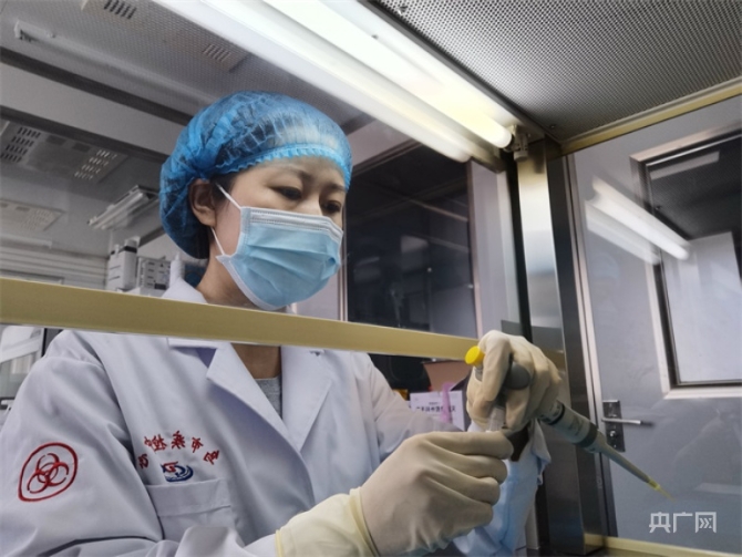 在如同戰(zhàn)場一樣的實驗室里,李慧田要進行三級防護,按照嚴(yán)格的操作流程,檢測樣本,查找病毒,定性“陰陽”,最忙碌時,她一天要檢測600余份樣本,每次實驗結(jié)束,汗水早已經(jīng)濕透衣衫。