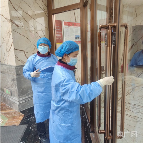 李慧田做公共場所消毒效果監(jiān)測采樣工作(央廣網(wǎng)發(fā) 烏蘭浩特市委宣傳部 供圖)