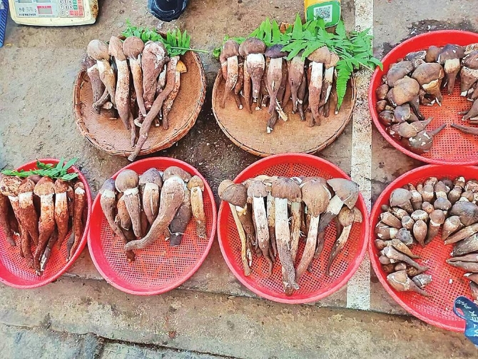 野生菌一大早被運到云南木水花野生菌交易中心,接著又被批發(fā)商拿到昆明的各大農(nóng)貿(mào)市場售賣。馬明海說,野生菌大量上市時,他會將野生菌儲藏在冷庫;野生菌落潮后,他將冷庫里的野生菌供應(yīng)給賓館、餐廳。