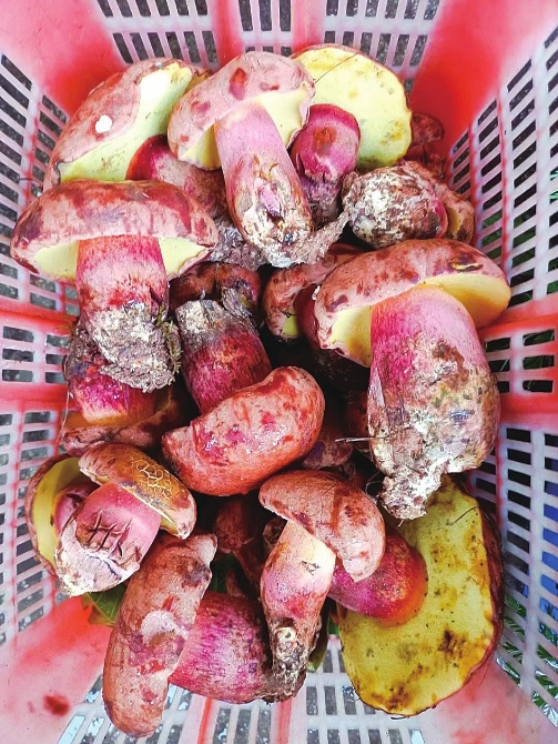 云南木水花野生菌交易中心工作人員介紹,市場里的紅蔥、白蔥、美味牛肝菌、黑牛肝、紫菌主要產(chǎn)自思茅,松茸主要產(chǎn)自香格里拉,青頭菌和雞樅主要產(chǎn)自文山,雞油菌主要產(chǎn)自四川,谷熟菌主要產(chǎn)自貴州。24日,大概有8噸野生菌被運到云南木水花野生菌交易中心。(春城晚報 記者楊質(zhì)高)