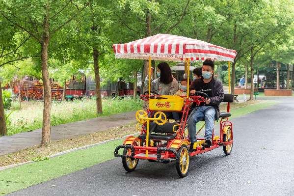 市民張女士是朱涇鎮(zhèn)居民,看到開園信息發(fā)布后,她就著手準(zhǔn)備了起來,逛了超市,買了適合速食的食品,預(yù)備在園區(qū)里“泡”上一天?!疤崆邦A(yù)約好過來,入口這測溫掃碼購票,挺快的,也就比平時(shí)多花個(gè)2、3分鐘,孩子已經(jīng)兒童樂園瘋玩一圈了,現(xiàn)在去找塊綠地搭個(gè)帳篷休息會(huì)兒,有點(diǎn)小雨,但不影響心情?!?/p>