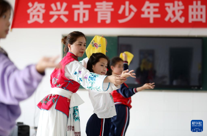 近年來,湖南省資興市積極推進傳統(tǒng)戲曲進校園,通過設(shè)立培訓(xùn)基地、興趣班、“第二課堂”等形式,邀請專業(yè)戲曲老師走進校園,為學(xué)生進行京劇、花鼓戲等教學(xué)輔導(dǎo),讓孩子們感受非遺文化的魅力。