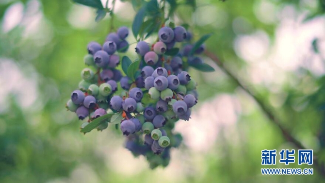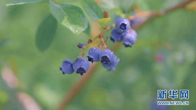 新鮮藍莓一串串的掛在綠葉底下,晶瑩透亮,讓人垂涎欲滴。新華網(wǎng)發(fā)