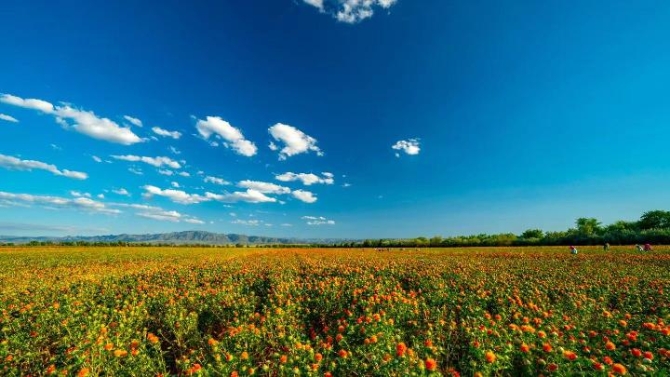 塔額盆地紅花種植歷史悠久,種植面積和產(chǎn)量占新疆的八成以上。位于塔額盆地南緣的裕民縣,是新疆乃至全國(guó)主要的紅花產(chǎn)區(qū)之一,有著“中國(guó)無(wú)刺紅花之鄉(xiāng)”的美稱,這里晝夜溫差大、日照時(shí)間長(zhǎng),優(yōu)越的地理環(huán)境為紅花的種植提供了良好的條件。