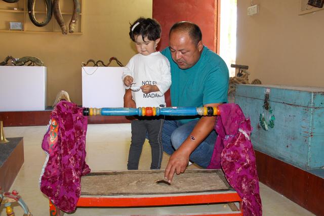 村民海拉提·托依百克告訴記者,爺爺年輕時(shí),為了帶自家孩子便訂制了這張搖床,沒想到,它后來成了村里人帶娃的“寶”,誰家生了孩子都想要借去用。