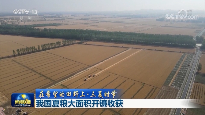 央視網(wǎng)消息(新聞聯(lián)播):今天(5月29日),全國冬小麥日機收面積連續(xù)三天超過500萬畝,夏糧主產(chǎn)區(qū)河南、安徽進入集中收獲期,標志著夏糧大面積收割全面展開。