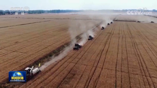 今天的夏糧主產(chǎn)區(qū)麥浪滾滾、機聲隆隆,呈現(xiàn)出一派豐收景象。