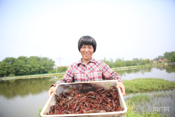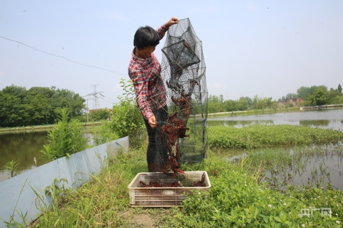“我們每天早晨都要發(fā)貨幾百斤,四五點就要起來工作,確保把最新鮮的小龍蝦送到大家的餐桌上?!碧正埿惺呛献魃绲睦蠁T工了,伴隨著嘩嘩的水聲,她熟練地將沉浸在水中的地籠慢慢提起,再輕抖幾下,一只只小龍蝦便滾落框中。