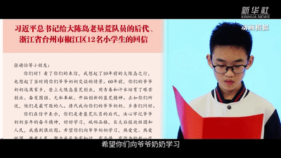 “努力成長(zhǎng)為有知識(shí)、有品德、有作為的新一代建設(shè)者。”2016年5月30日,習(xí)近平回信勉勵(lì)大陳島老墾荒隊(duì)員的后代,繼承和弘揚(yáng)大陳島墾荒精神,熱愛(ài)祖國(guó),好好學(xué)習(xí),砥礪品格。