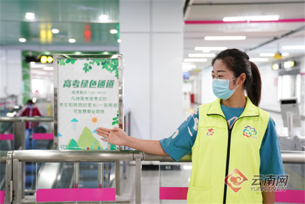 高考期間(6月7日至8日),昆明地鐵1、2號(hào)線首期、3號(hào)線,4號(hào)線,6號(hào)線所有車站均設(shè)置“高考綠色通道”,為高考考生提供免費(fèi)綠色通行服務(wù),考生及2名陪同家屬可憑“2022年高考準(zhǔn)考證”享受“優(yōu)先測(cè)溫和雙碼查驗(yàn)、優(yōu)先進(jìn)出站、優(yōu)先處理乘客事務(wù)、免費(fèi)乘坐昆明地鐵”的“三優(yōu)一免”服務(wù)。
