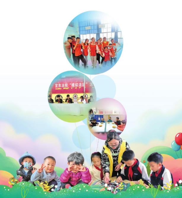 圖片分別為:楚雄州兒童福利院開(kāi)展親子游戲活動(dòng); 大理市兒童福利院組織為機(jī)構(gòu)內(nèi)集中養(yǎng)育兒童慶祝生日; 宜良縣法院走進(jìn)昆明臺(tái)湘科技學(xué)校開(kāi)展“模擬法庭”活動(dòng); 昆明市官渡區(qū)鳳凰山社區(qū)開(kāi)展生物多樣性主題親子手工課堂活動(dòng); 武定縣紅土田社區(qū)兒童之家社工帶領(lǐng)社區(qū)留守兒童開(kāi)展“紅色精神永流傳”學(xué)習(xí)小組活動(dòng)。