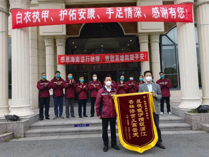 ▲5月23日,海南省援滬醫(yī)療隊在離開上海前合影留念。