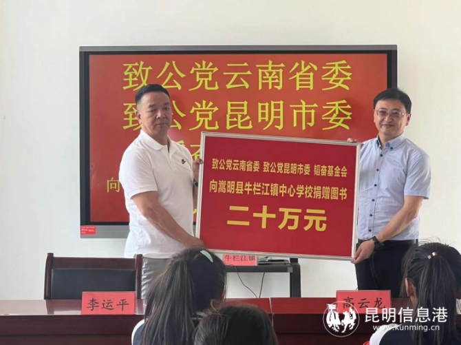 昆明信息港訊 6月1日,致公黨昆明市委會到嵩明縣牛欄江鎮(zhèn)中心學校開展“致公愛行”圖書捐贈活動。致公黨昆明市委高云龍副主委,牛欄江鎮(zhèn)李云平校長,致公黨昆明市委處室負責人,牛欄江鎮(zhèn)人民政府相關領導等參加了活動。