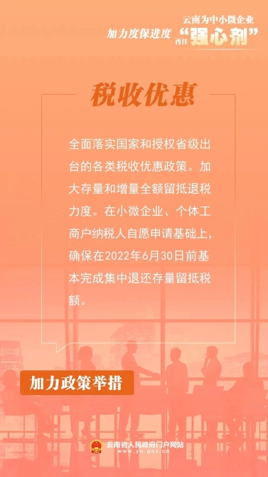 為深入貫徹落實(shí)黨中央、國務(wù)院關(guān)于穩(wěn)住經(jīng)濟(jì)大盤、助企紓困的安排部署,確保政策落地見效,云南省人民政府辦公廳印發(fā)《云南省進(jìn)一步幫扶中小微企業(yè)紓困發(fā)展工作方案》,助力中小微企業(yè)實(shí)現(xiàn)平穩(wěn)健康發(fā)展。