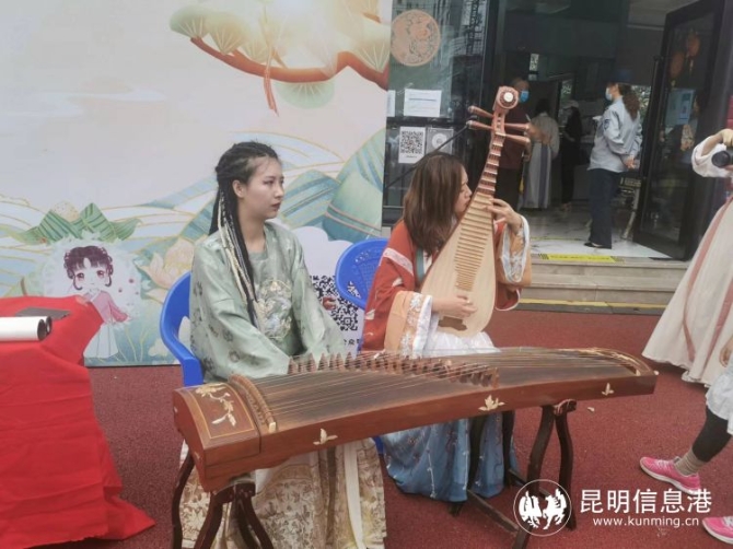 同時,盤龍江游船售票廳外不僅開展包粽子、投壺等端午民俗互動游戲,還有琵琶、古箏等表演,可謂精彩紛呈,吸引了廣大市民一同參與。參加活動的肖女士說道,帶著孩子來體驗漢服游,不僅有趣,還能了解傳統(tǒng)文化,非常有意義,很開心。