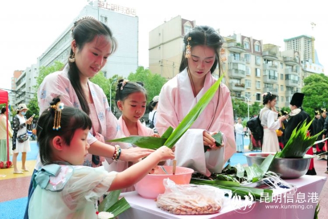 昆明信息港訊 記者尹吉 6月3日下午,“乘風(fēng)破浪 粽夏有約”盤龍江國潮端午游樂會在盤龍江桃源碼頭啟動。據(jù)悉,6月3日至6月5日,昆明滇潤公司為乘客提供免費漢服,讓游客在賞花賞景的同時,體驗沉浸式國潮古風(fēng)漢服游。