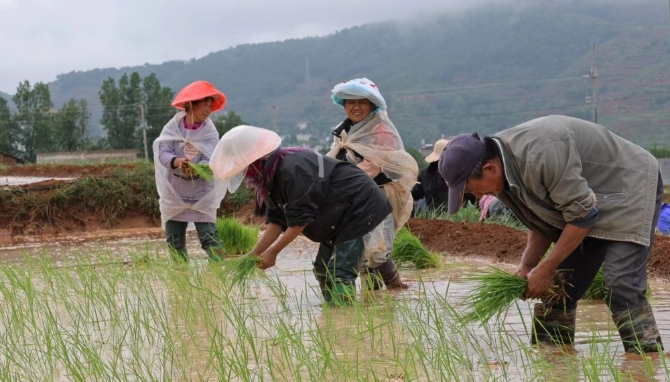 云南省會(huì)澤縣迤車鎮(zhèn)群眾正在插秧。(李榮山攝)