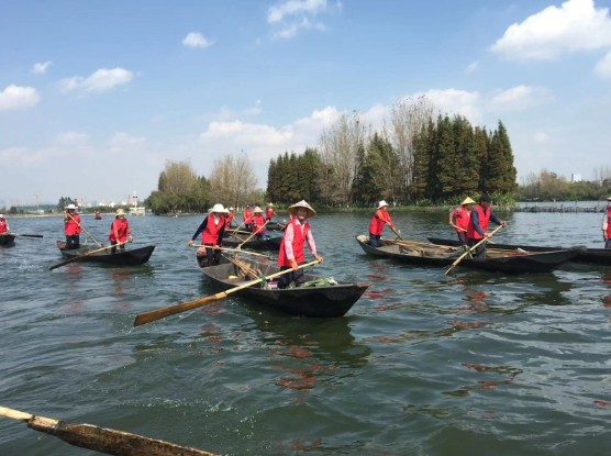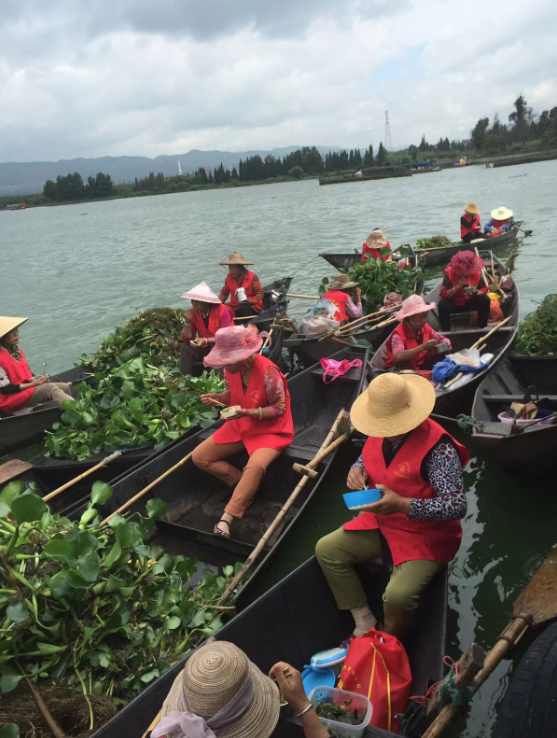 為保護(hù)母親湖,還子孫后代一池碧水,1988年居住在滇池草海的漁家女自發(fā)成立了一支打撈隊(duì)。隨后,昆明市西山區(qū)婦聯(lián)在福海街道辦事處新河社區(qū)正式組建“巾幗打撈隊(duì)”。成立之初,隊(duì)員從十幾歲的女孩到花甲之年的老婦共有40多人,她們劃著自家木船,拿網(wǎng)兜打撈水草、垃圾和漂浮物。34年來,巾幗打撈隊(duì)歷經(jīng)了三代人,隊(duì)伍規(guī)模最大時(shí)曾達(dá)上百人,隊(duì)員不分刮風(fēng)下雨,白晝黑夜,一船一船往岸上運(yùn)送打撈物。