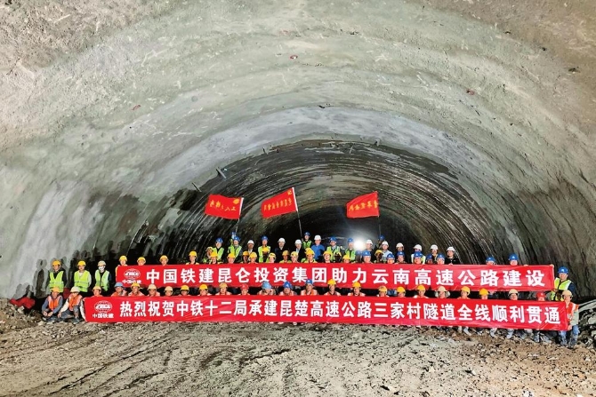 6月6日,新昆楚高速公路入城段控制性工程——三家村隧道右幅順利貫通,左幅已于5月23日順利貫通。至此,新昆楚高速全線24座隧道全部貫通。