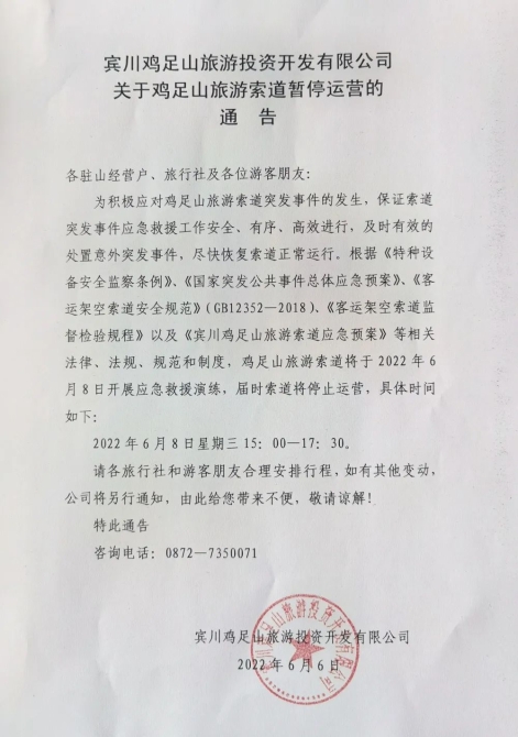 還有一件事情要提醒一下, 6月8日,雞足山旅游索道暫停運營。