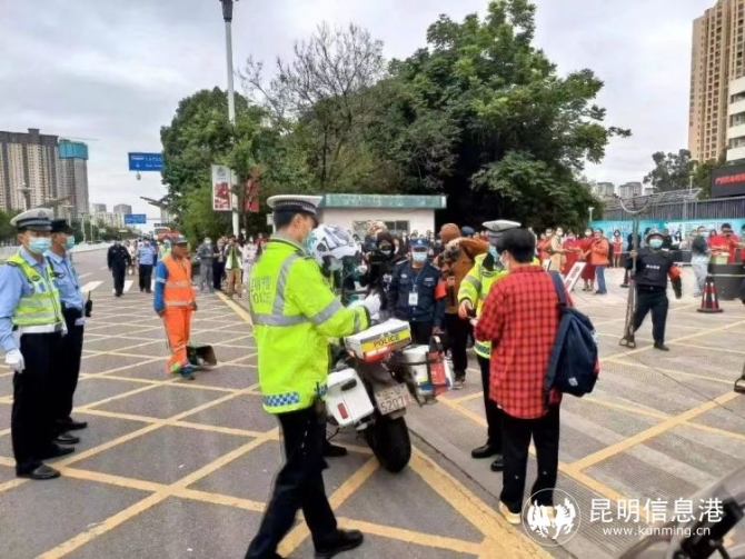 8時41分,在昆明市第一中學西山分校門口,一名考生著急地向執(zhí)勤民警求助:自己跑錯考場,現(xiàn)在考試馬上要開始了……西山公安巡特警大隊民警立即向指揮中心報告,聯(lián)合交警一道駕駛摩托車將考生火速送往4公里外的西山區(qū)第一中學考點,僅耗時5分鐘就安全到達。