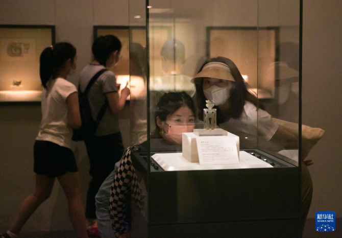 6月7日,觀眾在中國國家博物館觀看展品“雙性玉人”。新華社記者 李京 攝