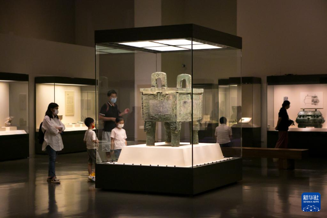 6月7日,觀眾在中國國家博物館觀看“后母戊”青銅方鼎。新華社記者 李京 攝